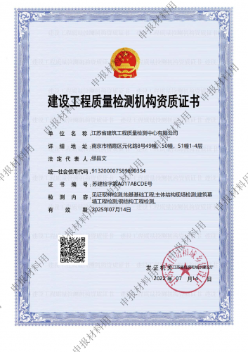 國家城市軌道交通建設工程產品質量監督檢驗中心, 依托江蘇省建筑科學研究院和江蘇省建筑工程質量檢測中心在城市軌道交通建設工程領域的綜合技術優勢,于2016年10月獲得國家認證認可監督委員會批準授權..